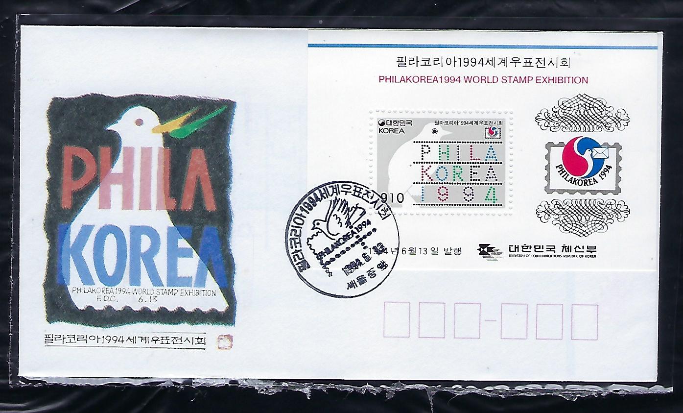 1994년 필라코리아 1994 세계우표전시회 시트 우표 안내 카드 포함 초일 봉투(FDC)