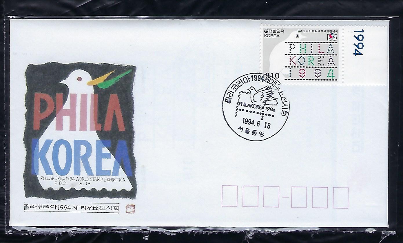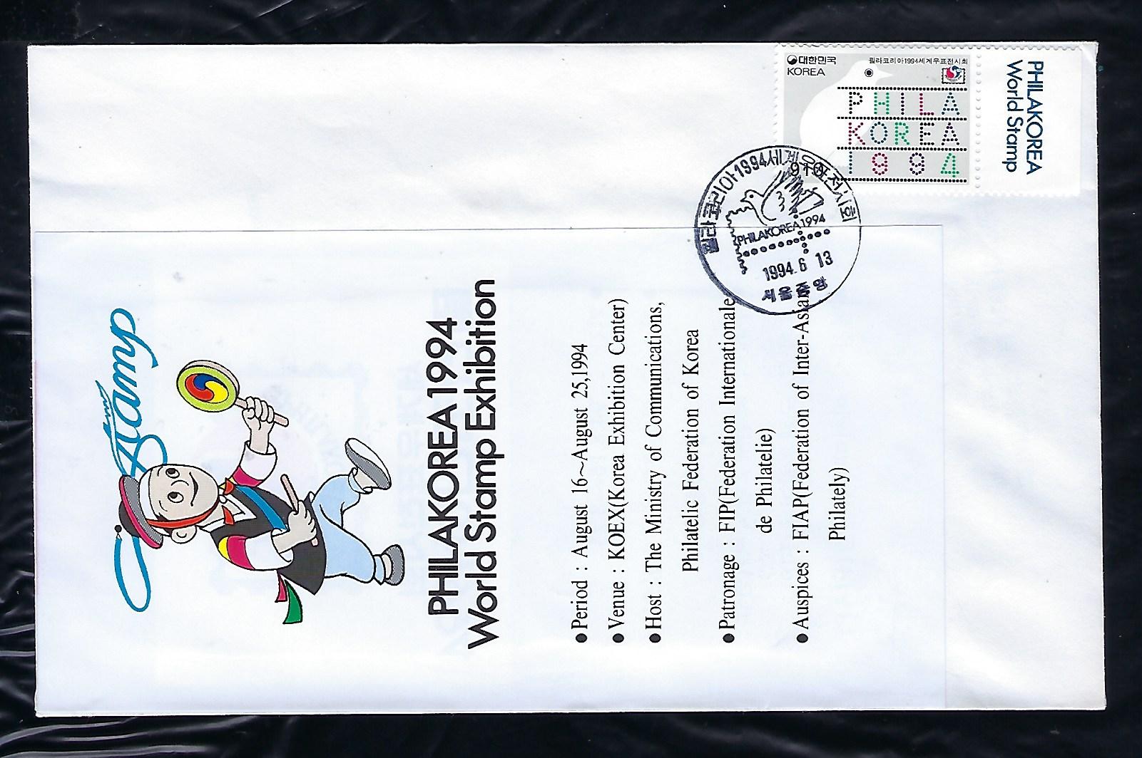 1994년 필라코리아 1994 세계우표전시회 우표 안내 카드 포함 초일 봉투(FDC)