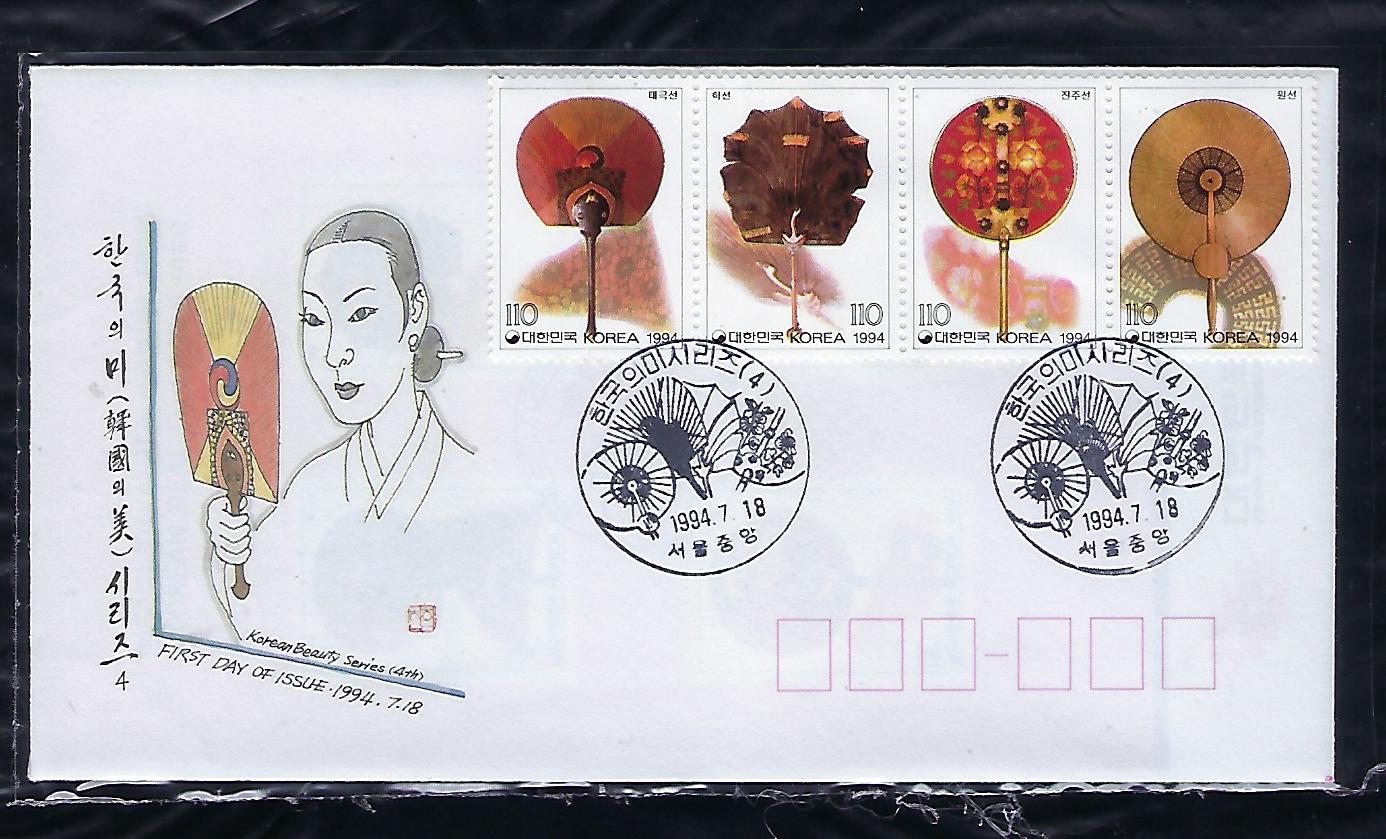 1994년 한국의 미 시리즈 제 4 집 우표 4연쇄 안내 카드 포함 초일 봉투(FDC)