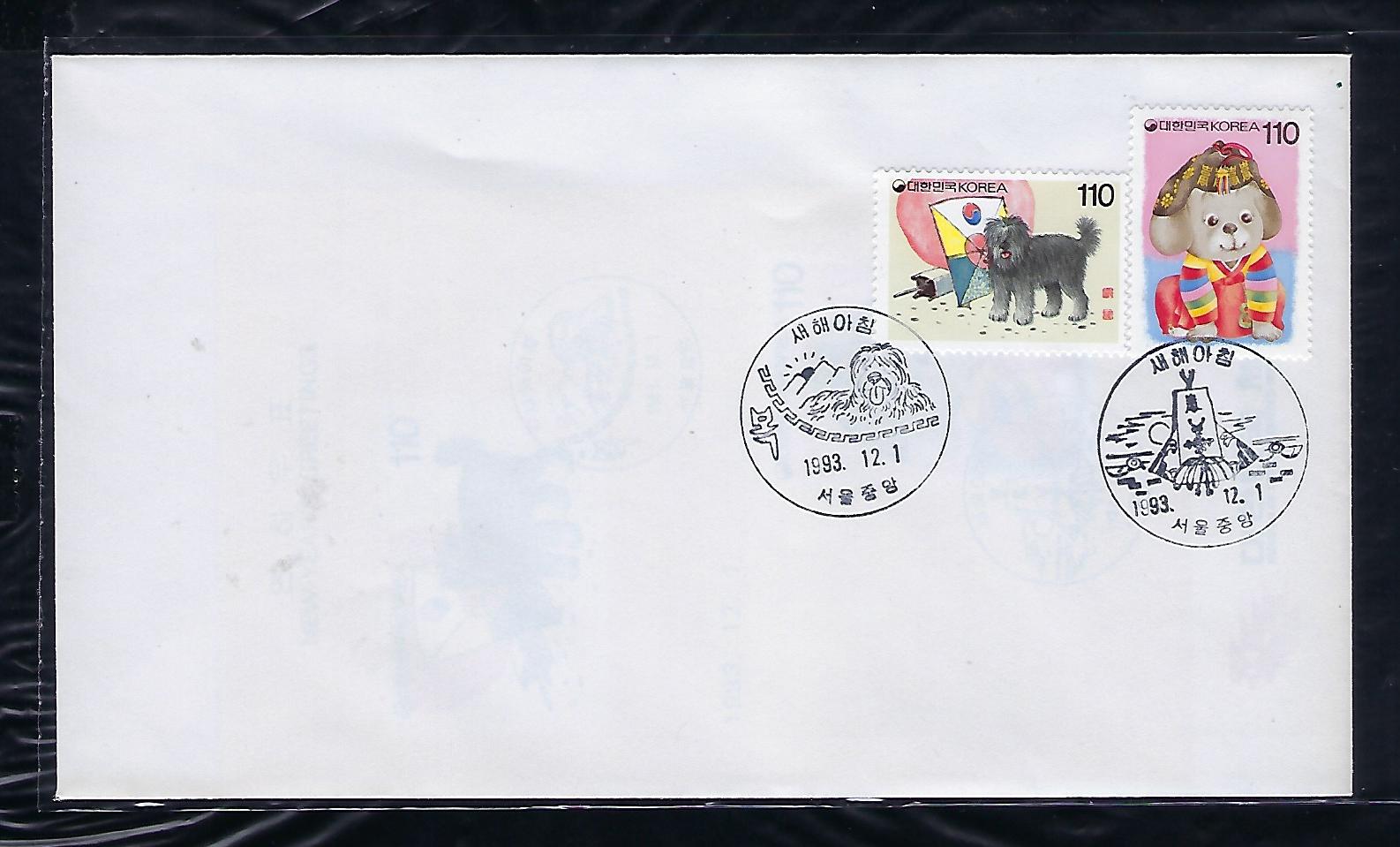 1993년 94연용 연하 우표 2완 안내 카드 포함 초일 봉투(FDC)
