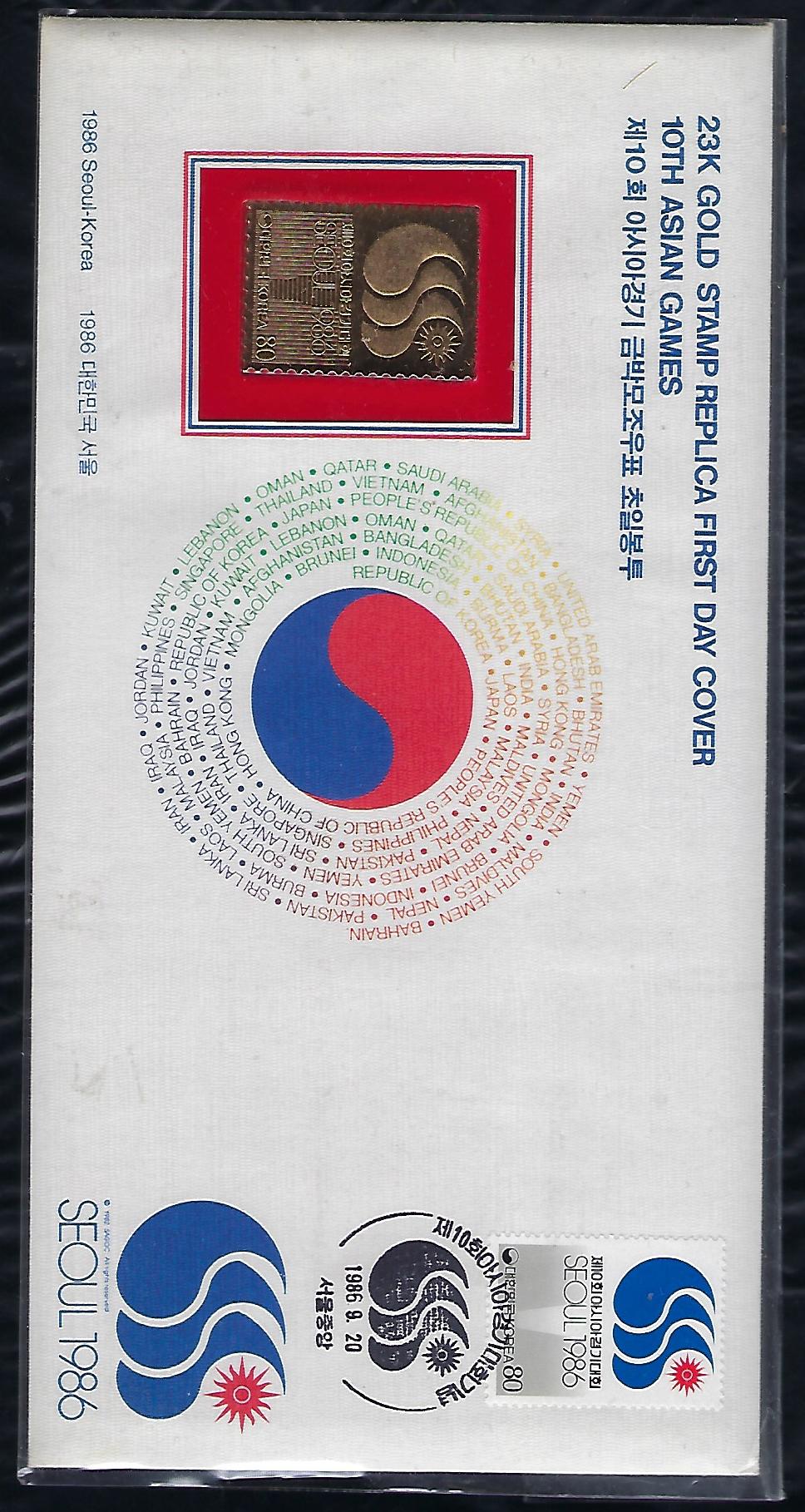 1986년 제10회 아시아 경기대회 금박 모조우표 초일봉투(FDC)