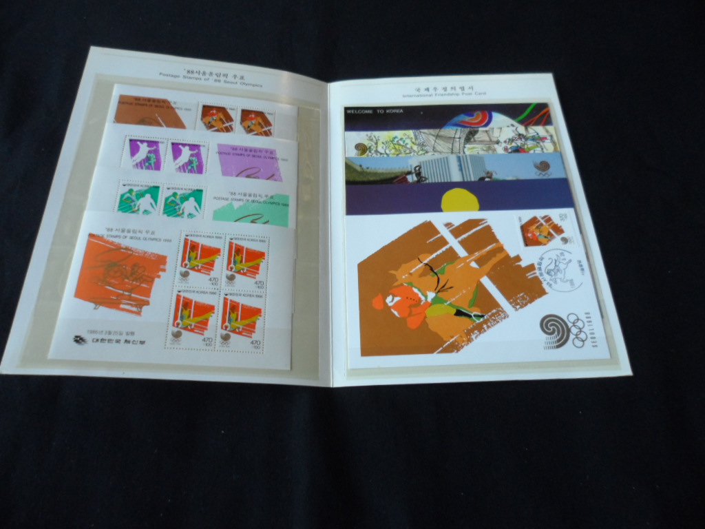 > 전체카테고리 > 한국우표 > 우표첩책 항공우평엽서와 88서울올림픽우표모음(1)우표첩으로 상태는 처음 발행 당시 그대로입니다. 올림픽 고액시트와 국제우정엽서 5장이 들어있습니다.