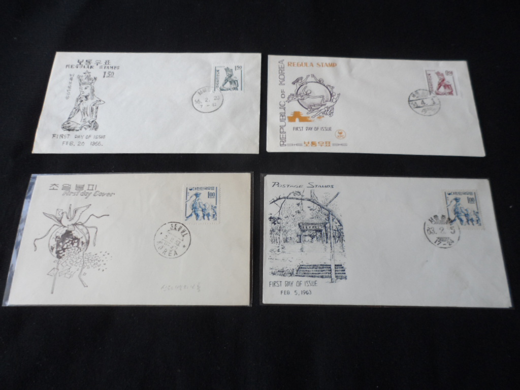 우표 1964~6도발행 1차국산백지보통 초일봉피 (F.D.C) 14종