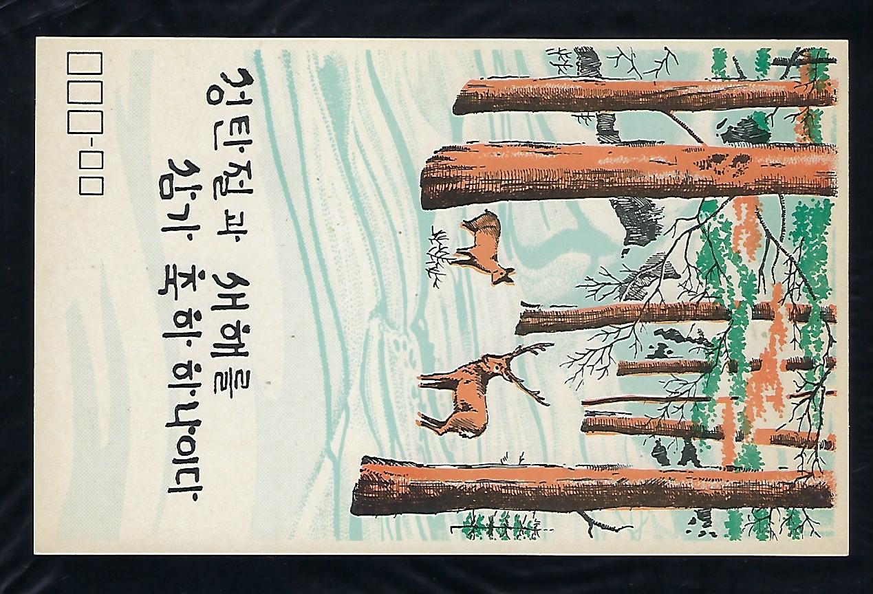 > 전체카테고리 > 한국우표 > 우편엽서 1971년용 연하 엽서 팽이와 설경입니다.