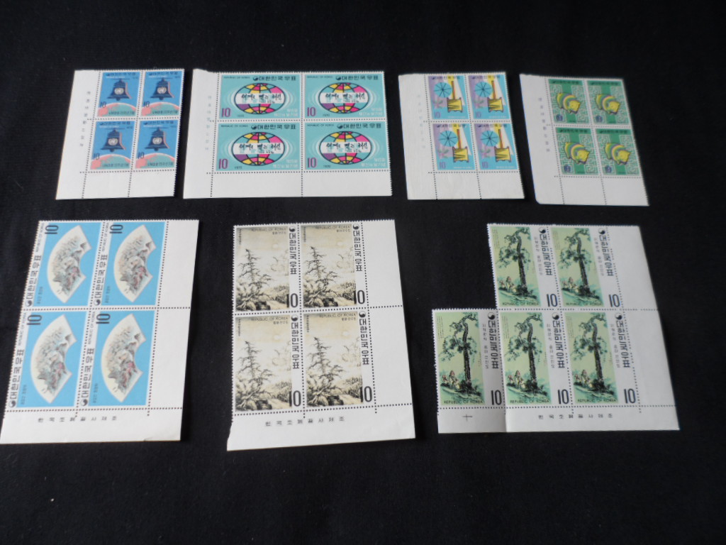 1970년도 발행 기념 연하 우표 명판田형 35종으로 상태 아주 좋습니다(VF).