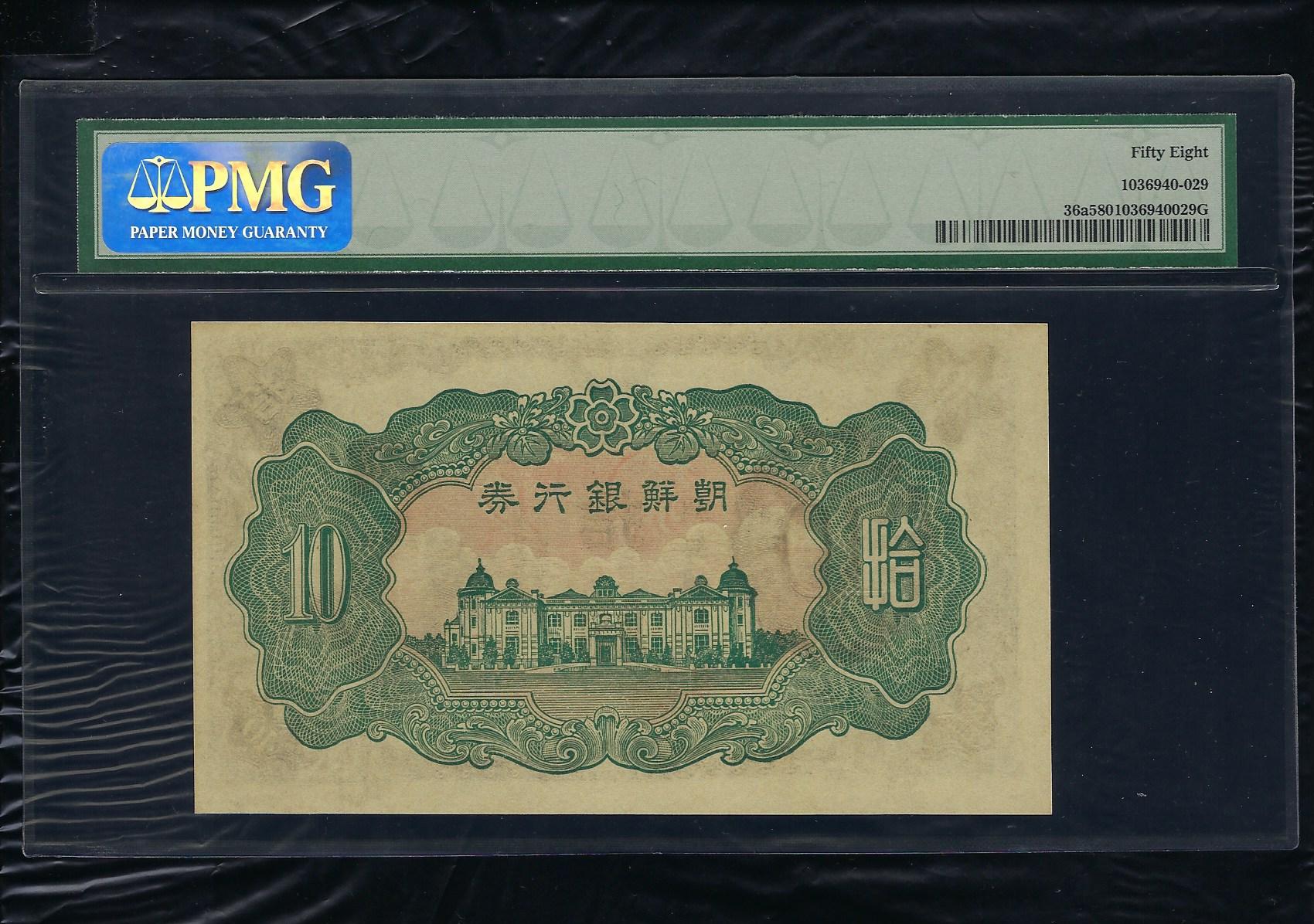 조선은행 갑 10원권으로 상태는 사진에서 보시는 봐와 같이 더 설명이 필요없는 미사용품 바로밑 60 다음