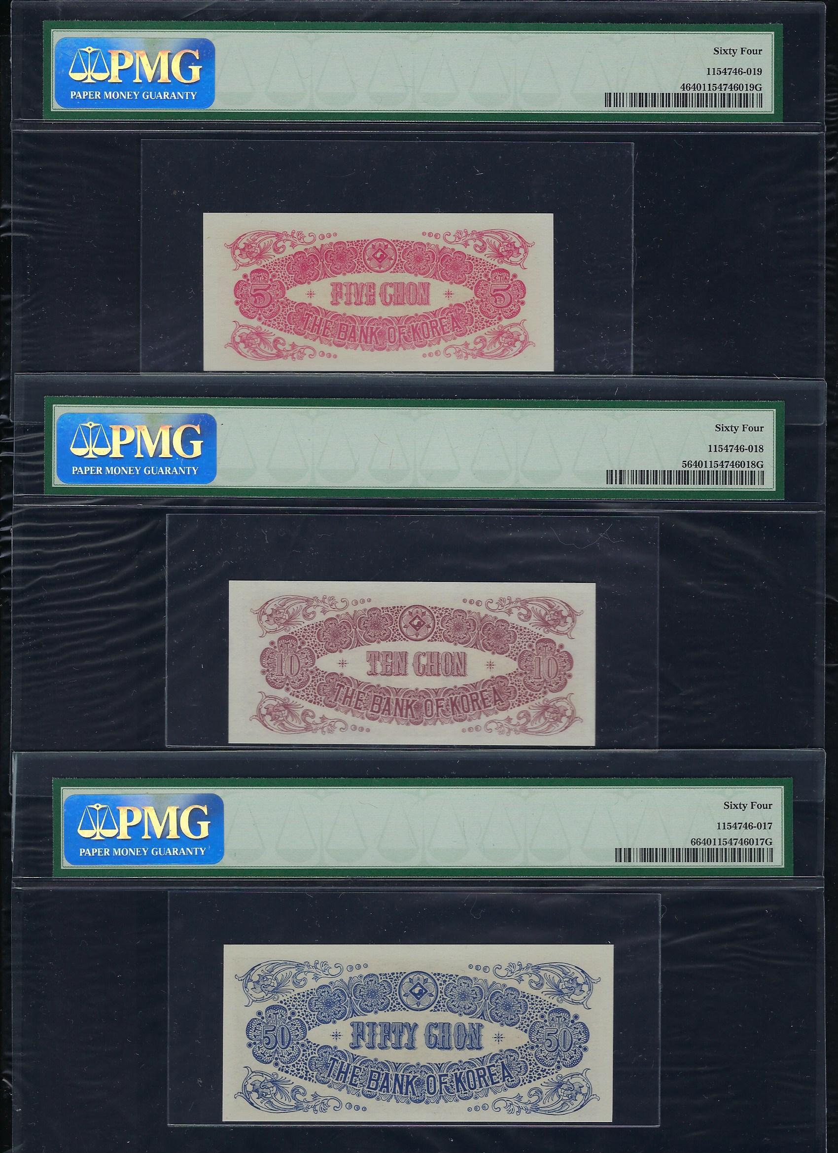 조선은행 소액 5.10,50 전권 3종 set PMG 64
