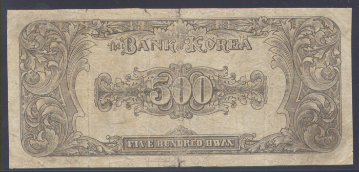 > 전체카테고리 > 우리나라 지폐 > 한국은행권 한국은행개 500 환권 중앙이박으로 상태는 사진에서 보시는 봐와 같이 +보품정도입니다.