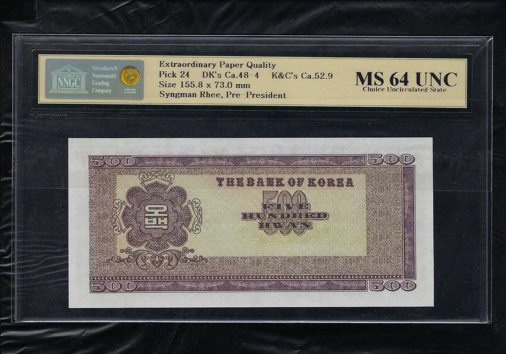 한국은행 신 500 환권 4292년 제 37 판 NNGC MS 64 UNC
