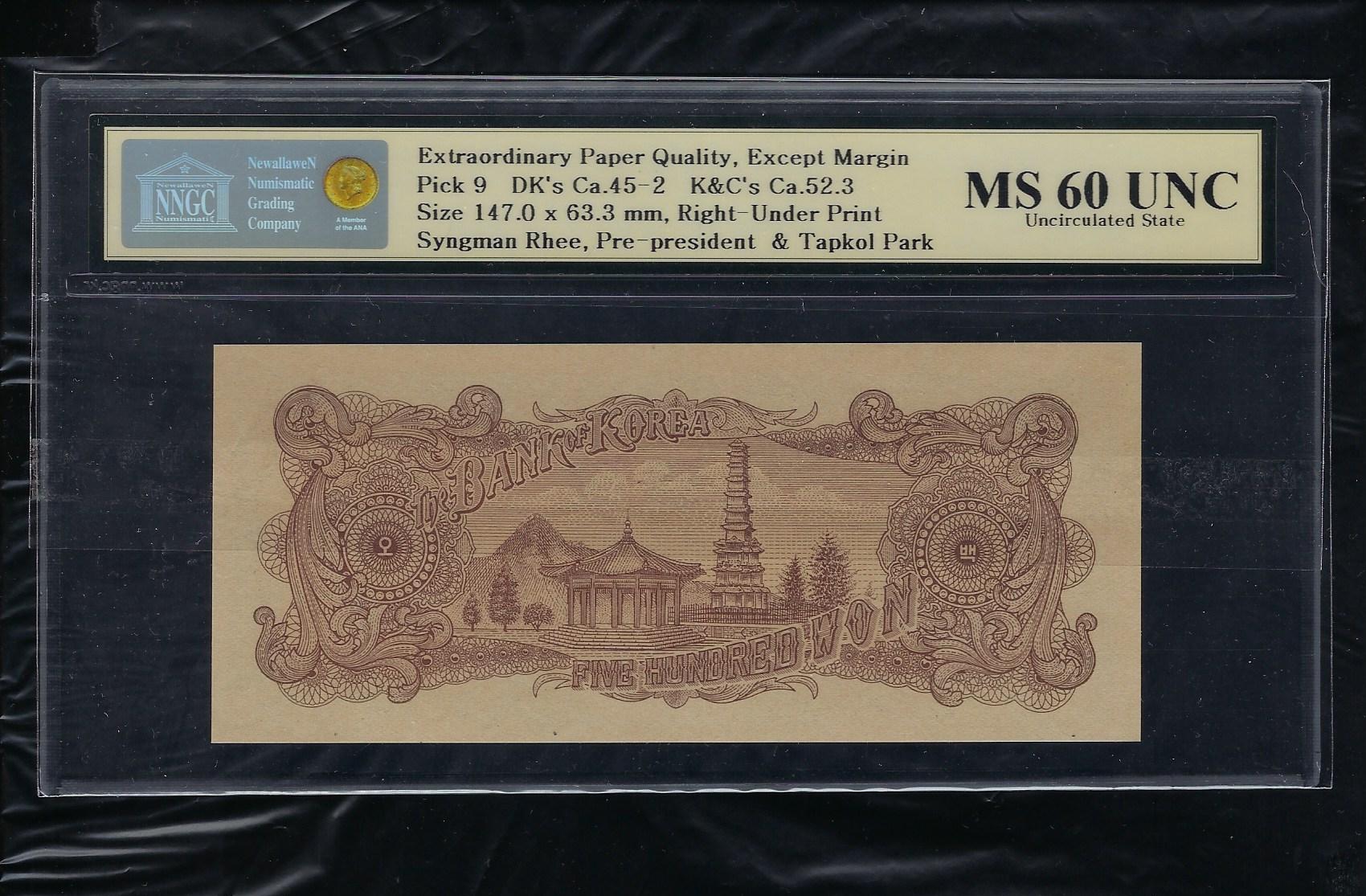 한국은행 500 원권(남색지) NNGC MS 60 UNC