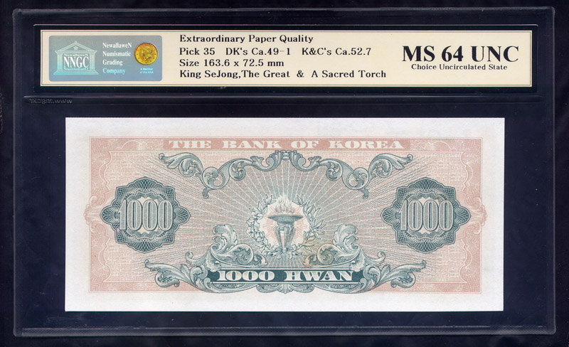한국은행 개 1000 환권 1962년 NNGC MS 64 UNC