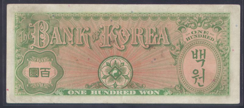 한국은행 거북선 100환권으로 상태는 +극미품정도입니다. 참고로 최근 발간된 한국화폐도록 평가금액은