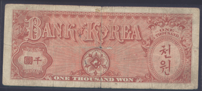 > 전체카테고리 > 우리나라 지폐 > 한국은행권 > 한국은행 1000환권 거북선 한국은행 1000 환권 거북선으로 상태는 사진에서 보시는 봐와 같이 +보품정도입니다.