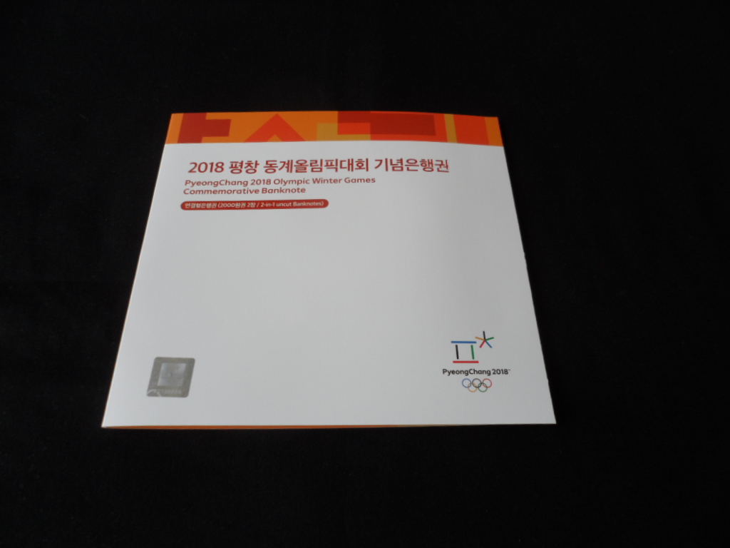 "2018 평창 동계올림픽대회 기념지폐은행권"으로 2매 연결형 지폐와