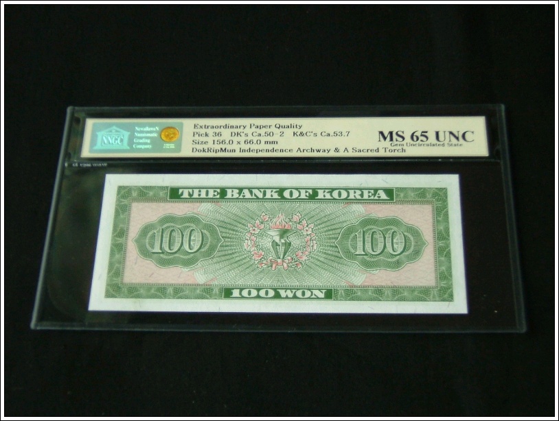 참고로 한국화폐도록 평가금액은 미사용품이 600,000원입니다만 완미 NNGC MS 65 UNC 등급은 훨씬 더 높은 가격에 거래됩니다.