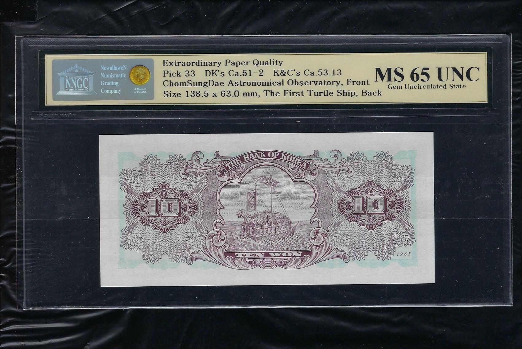 한국은행 나 10 원권 1965 년 제 93 판 NNGC MS 65 UNC