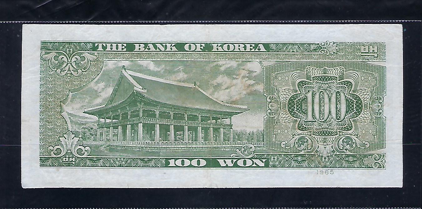 > 전체카테고리 > 우리나라 지폐 > 한국은행현행권 한국은행 나100 원권 경회루 1965으로 상태는 사진에서 보시는 봐와 같이