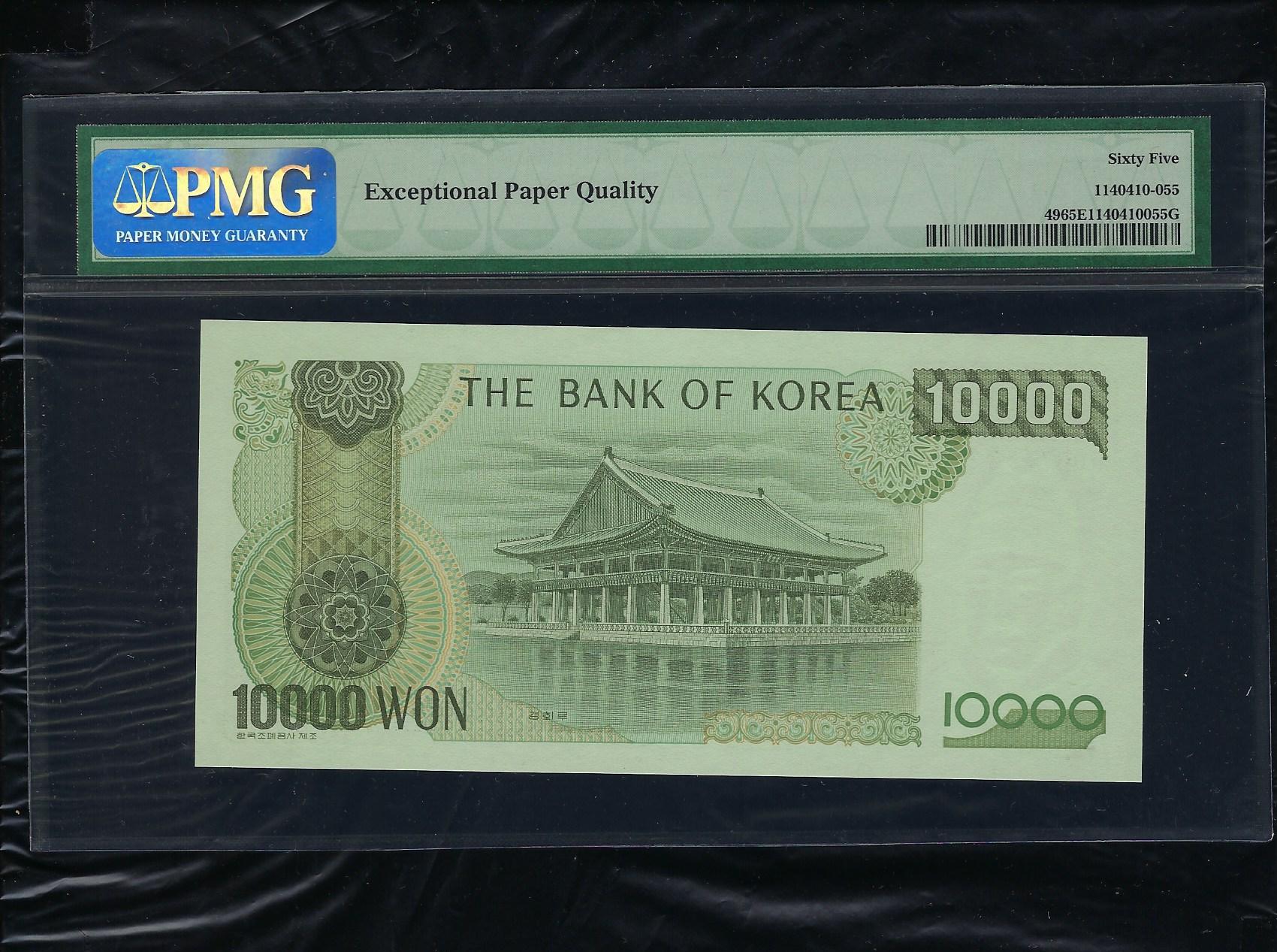 한국은행 다 10000원권으로 상태는 사진에서 보시는 봐와 같이 더 설명이 필요 없는 완전미사용품 PMG 65 등급입니다.