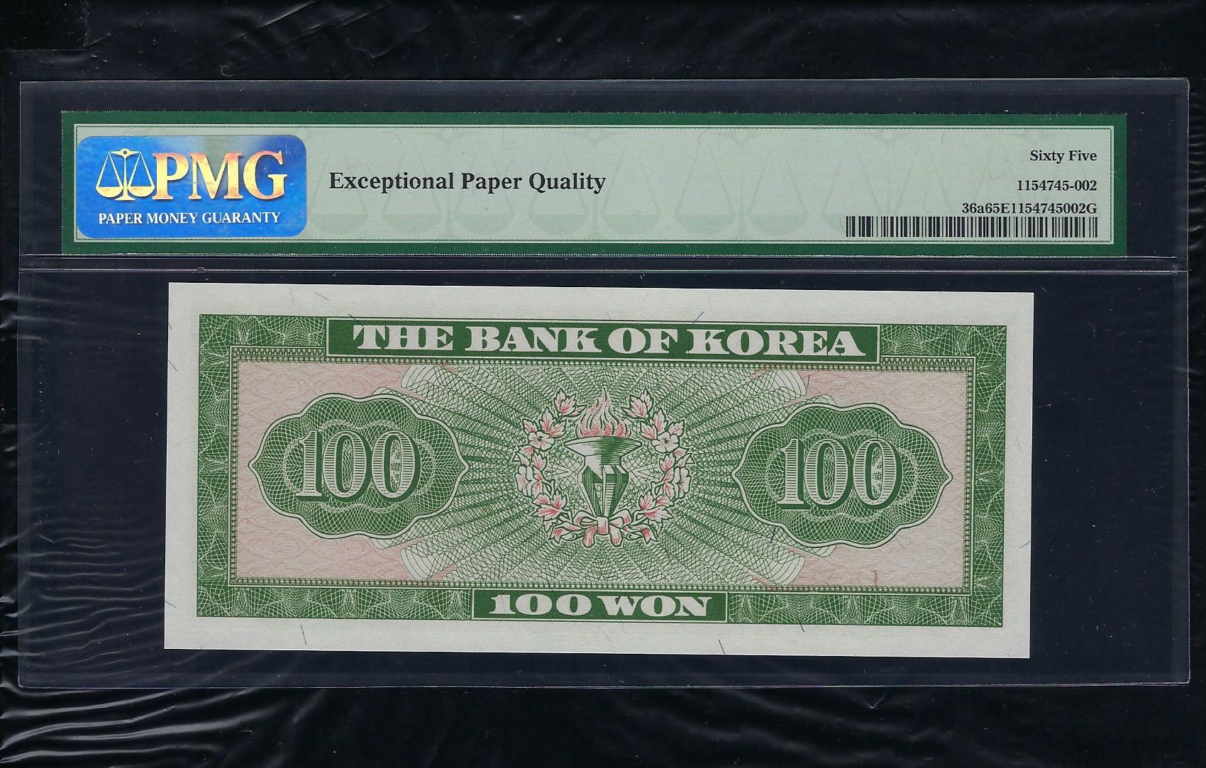 참고로 한국화폐가격도록 평가금액은 미사용품이 600,000원입니다만 완전미사용품 PMG 65 등급은 훨씬 더 높은 가격에 거래됩니다.
