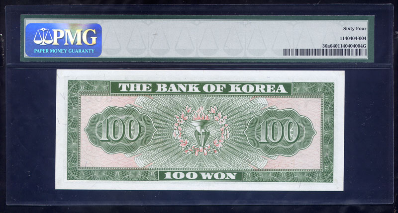 한국은행 가 100 원권 영제 사다리노트 PMG 64