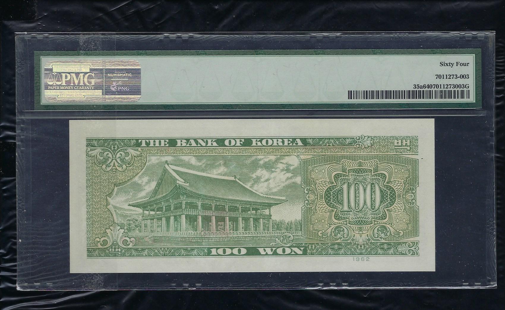 한국은행 나 100 원권 경회루 1962년 가가 00 초판 PMG 64