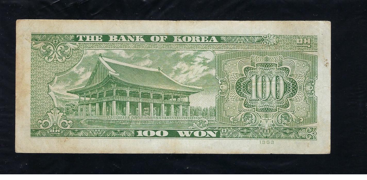 > 전체카테고리 > 우리나라 지폐 > 한국은행현행권 > 나100원권(경회루) 한국은행 나 100원권 1963년 경회루로 상태는 사진에서 보시는 봐와 같이 극미품 정도입니다.