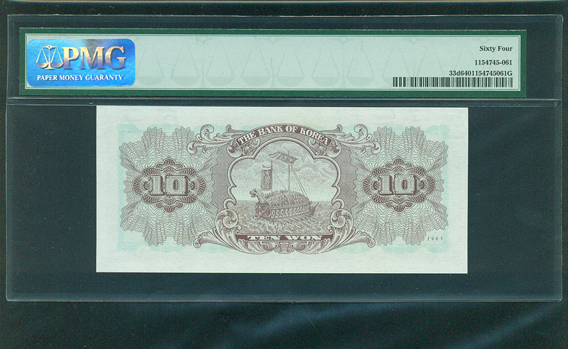 참고로 한국화폐가격도록 평가금액은 미사용품이 200,000원입니다만 최 상위 미사용품 PMG 64 등급은 훨씬 더 높은 가격에 거래됩니다.