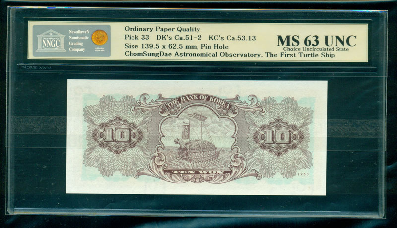 한국은행 나 10 원권 1965년 제58판 NNGC MS 63 UNC