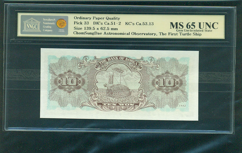 한국은행 나 10 원권 1962 년 제 11 판 NNGC MS 65 UNC