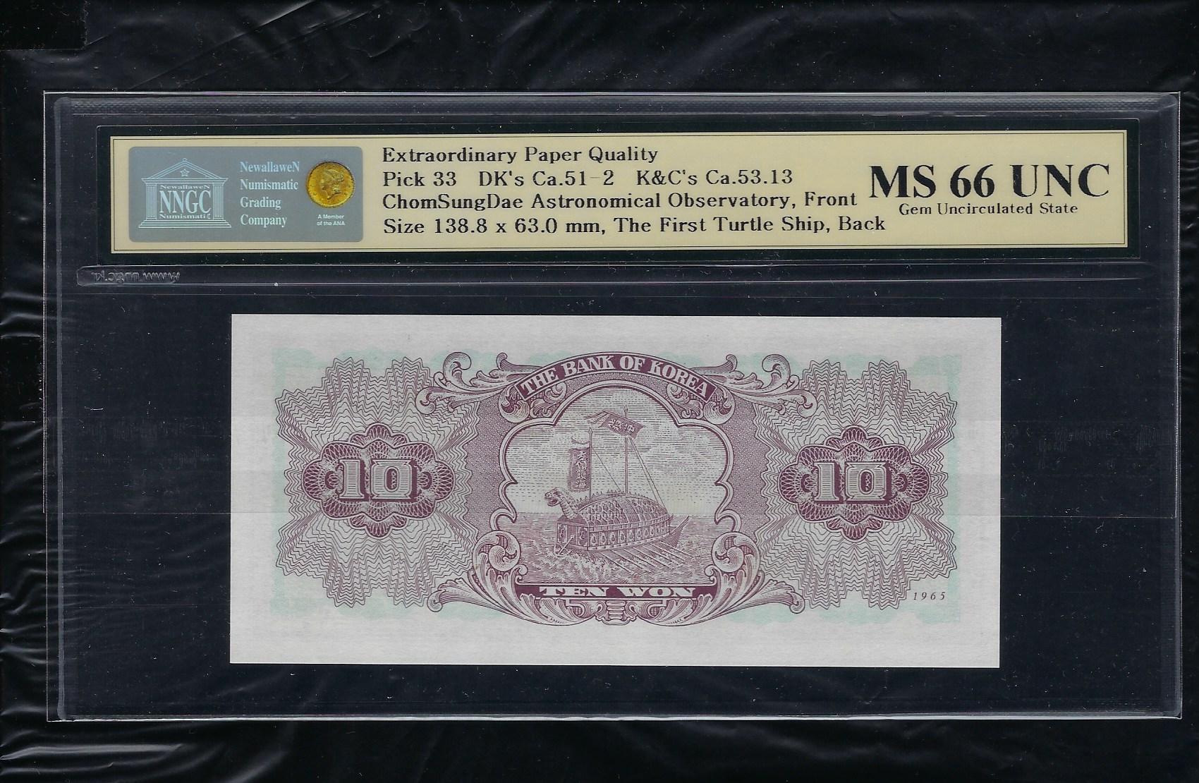 참고로 한국화폐도록 평가금액은 미사용품이 200,000원입니다만 완전미사용품 NNGC MS 66 UNC 등급은 훨씬 더 높은 가격에 거래됩니다.