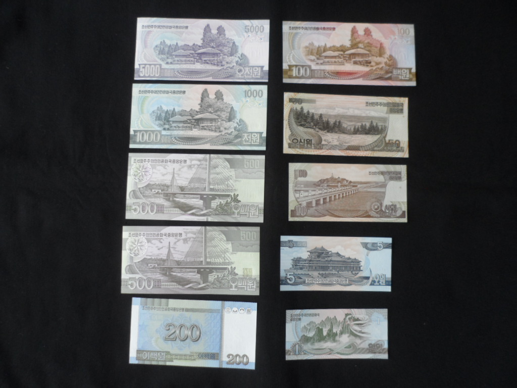 북한지폐 92년이후 발행 5000.1000.500(2).200.100.50.10.5.1원 10종 미사용품