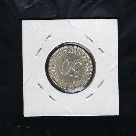 > 전체카테고리 > 주화 > 현행주화 한국은행 50환 4294년으로 상태는 사진에서 보신봐와 같이 +극미품정도 입니다.