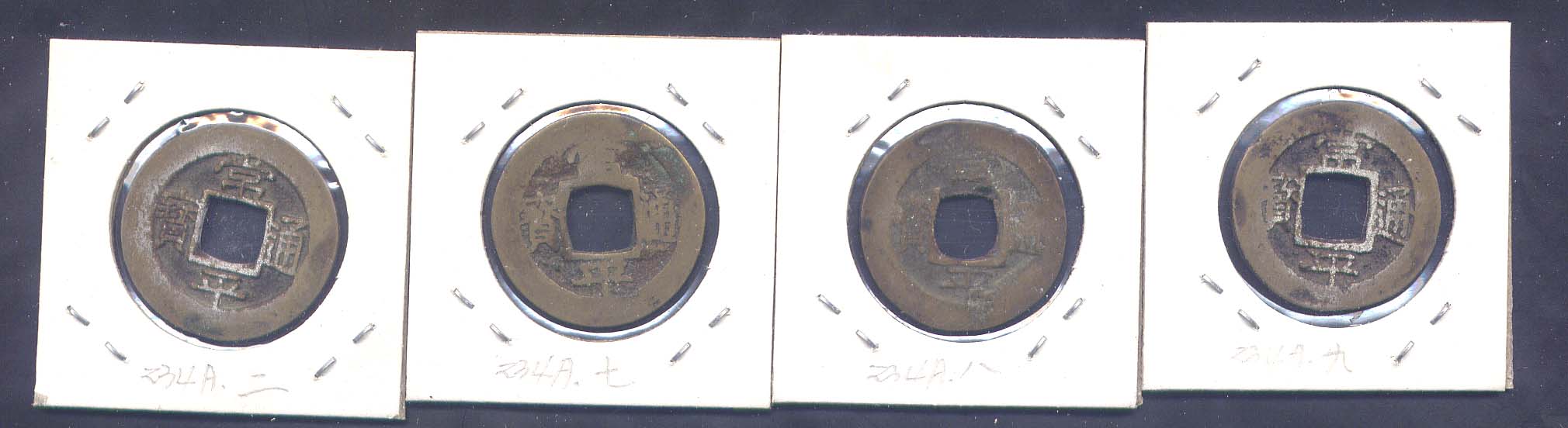 常平通寶當 當一錢 背 `營`下 `數字順` 左;日票 4종234A