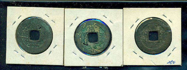 > 전체카테고리 > 주화 > 상평통보 常平通寶 當一錢 背 `平`下 `數字順` 大形 二,七,十,3종으로 상태는 사진과 같이 아주 좋습니다
