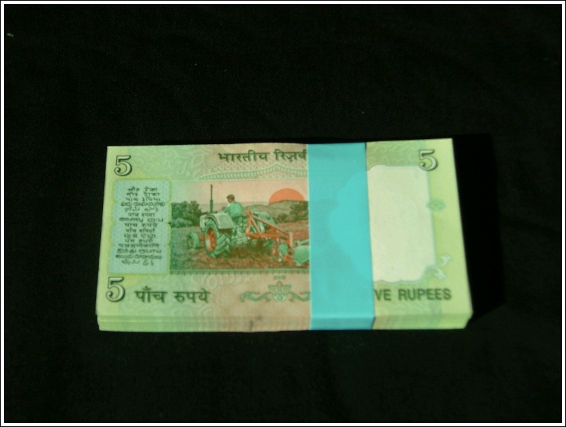 인도 지폐 5 루피 (2009년) 100장 제다발