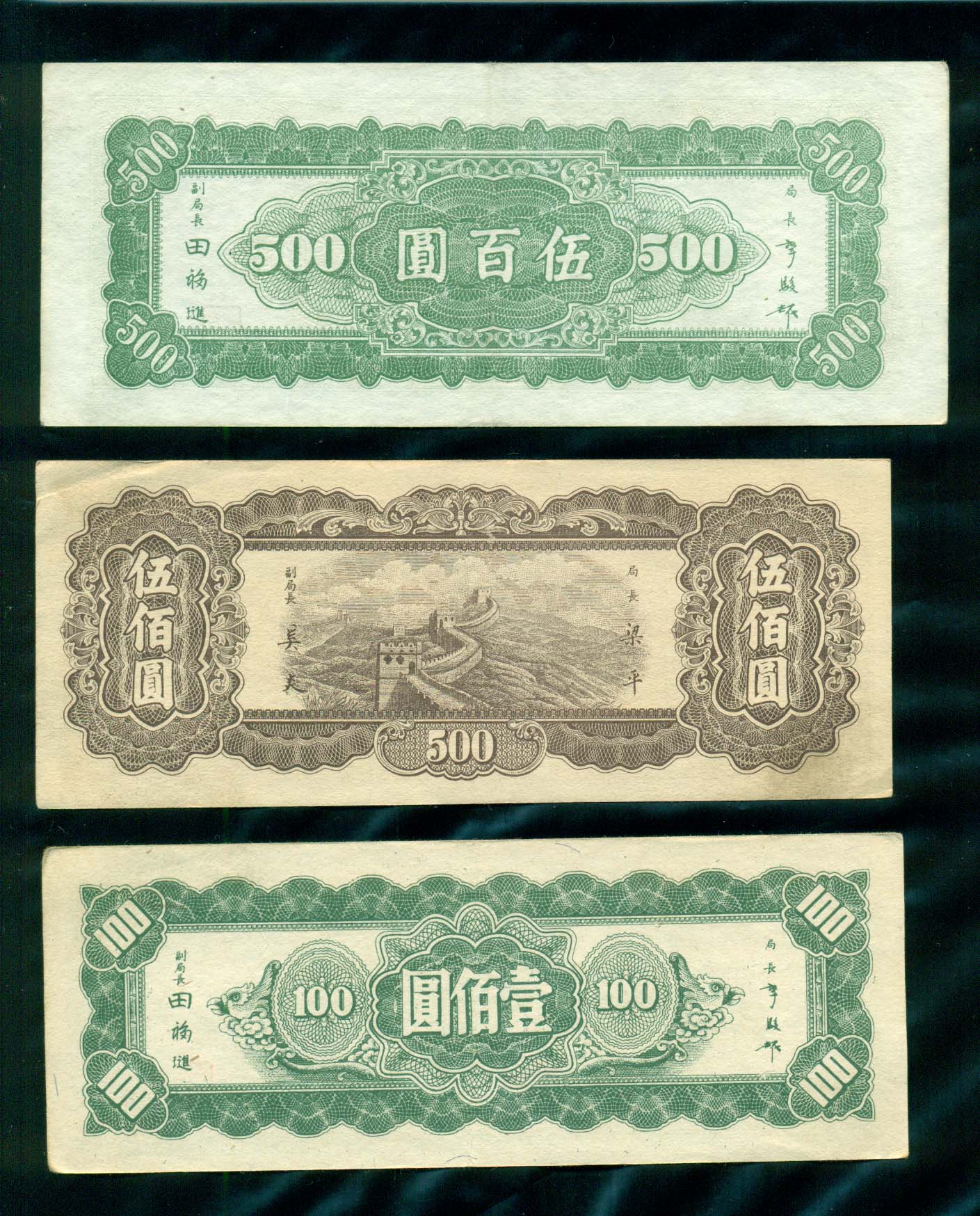 中央銀行 500,500,100원권 中華民國三十六~四年 3장