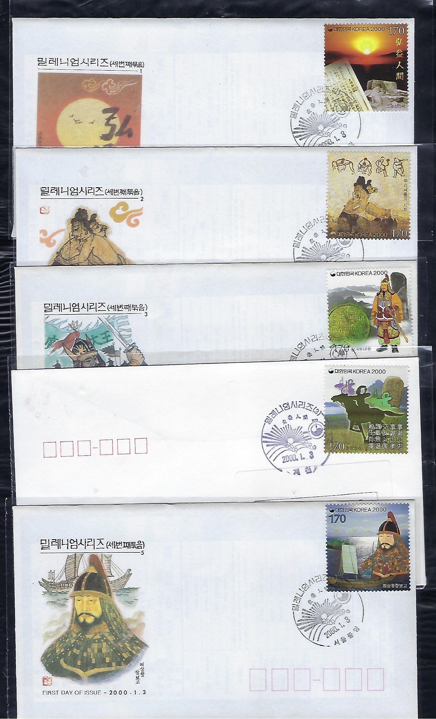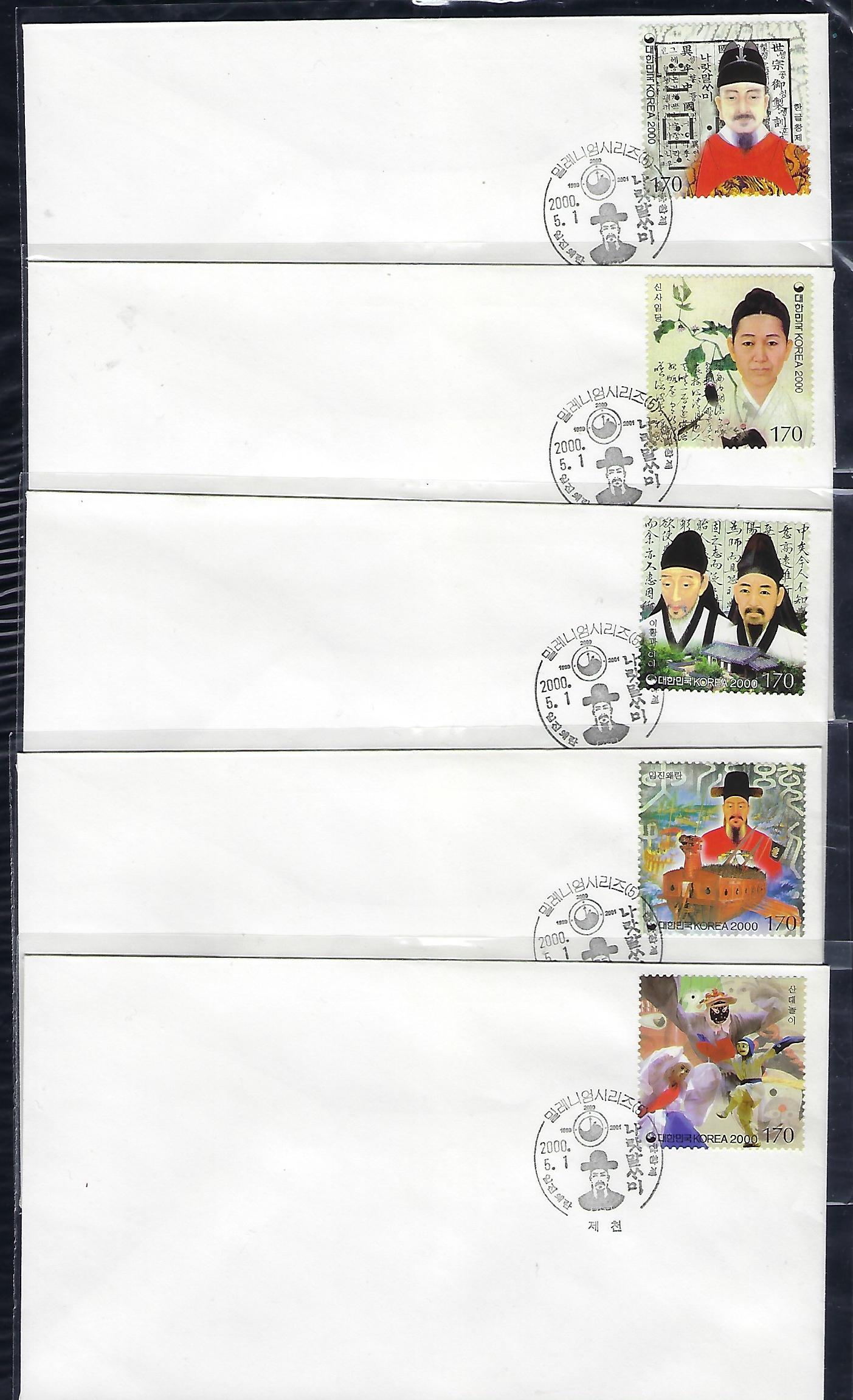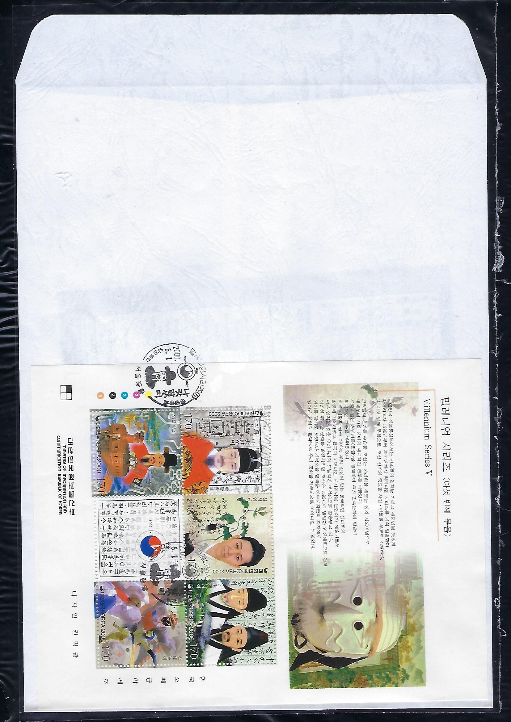 2000년 밀레니엄 시리즈 (제5집) 우표 초일 봉투(FDC) 5완