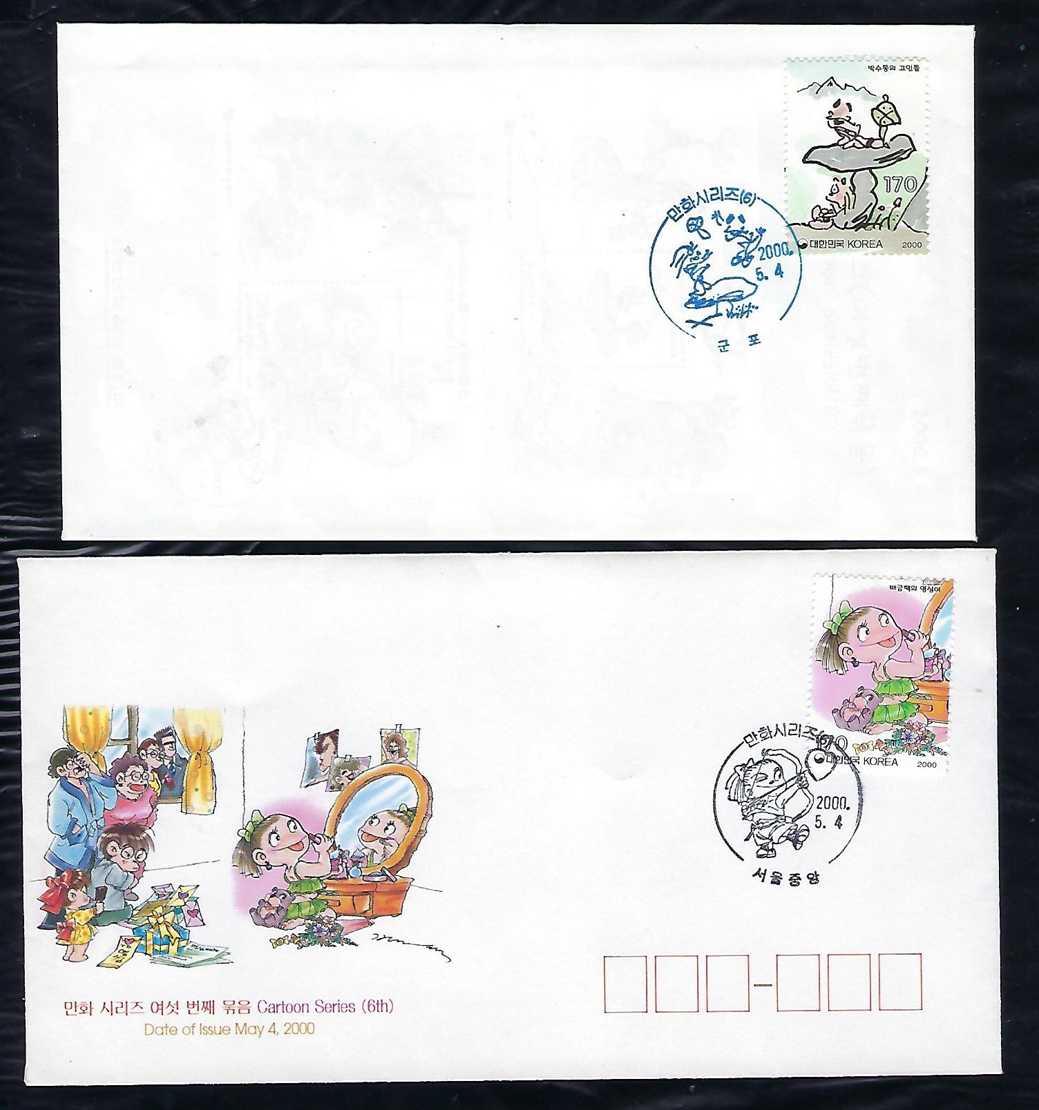 2000년 만화시리즈 (6집) 우표 2장 초일 봉투(FDC) 2완