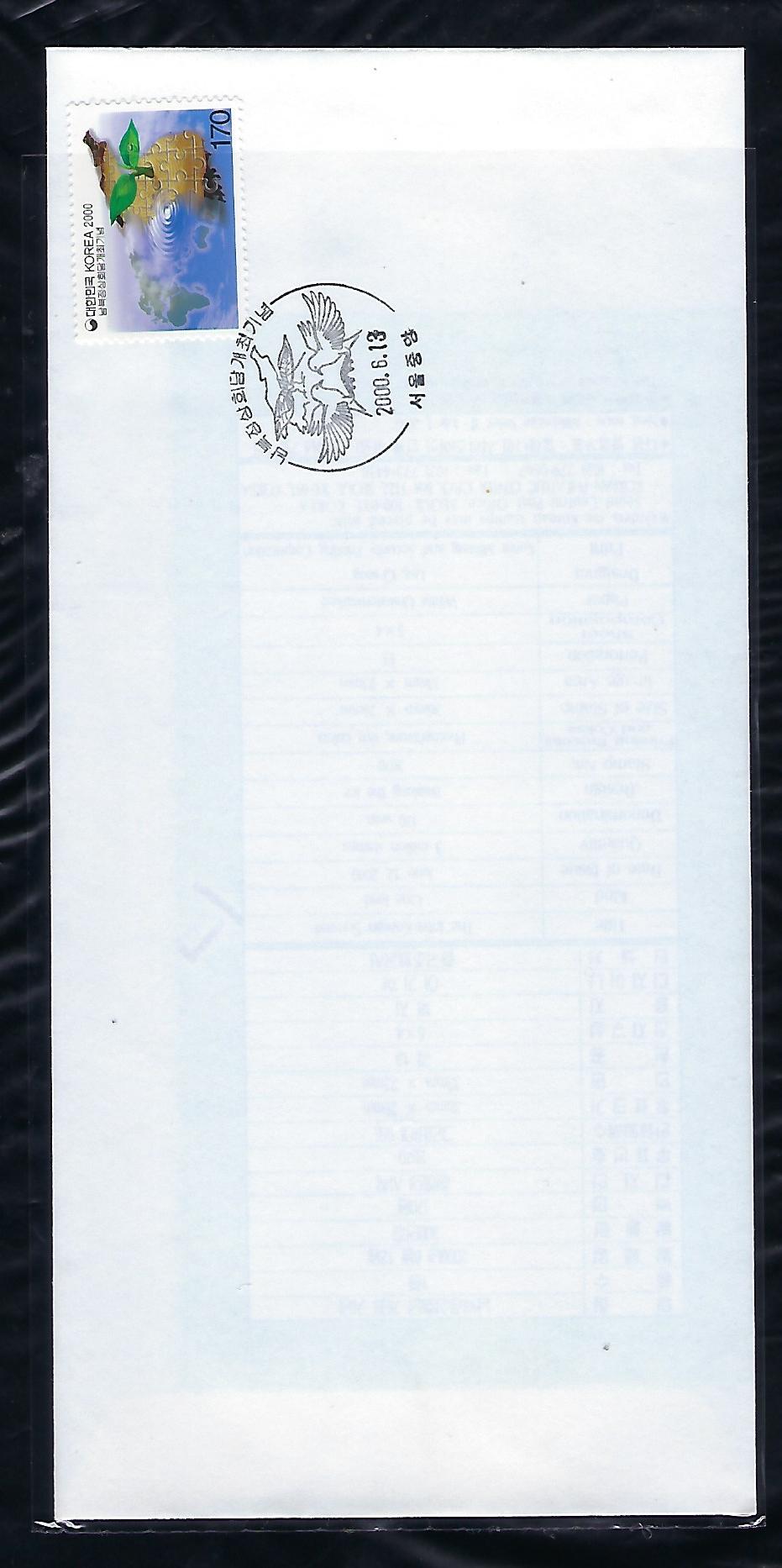 2000년 남북 정상 회담 개최 기념 우표 안내 카드 포함 초일 봉투(FDC)