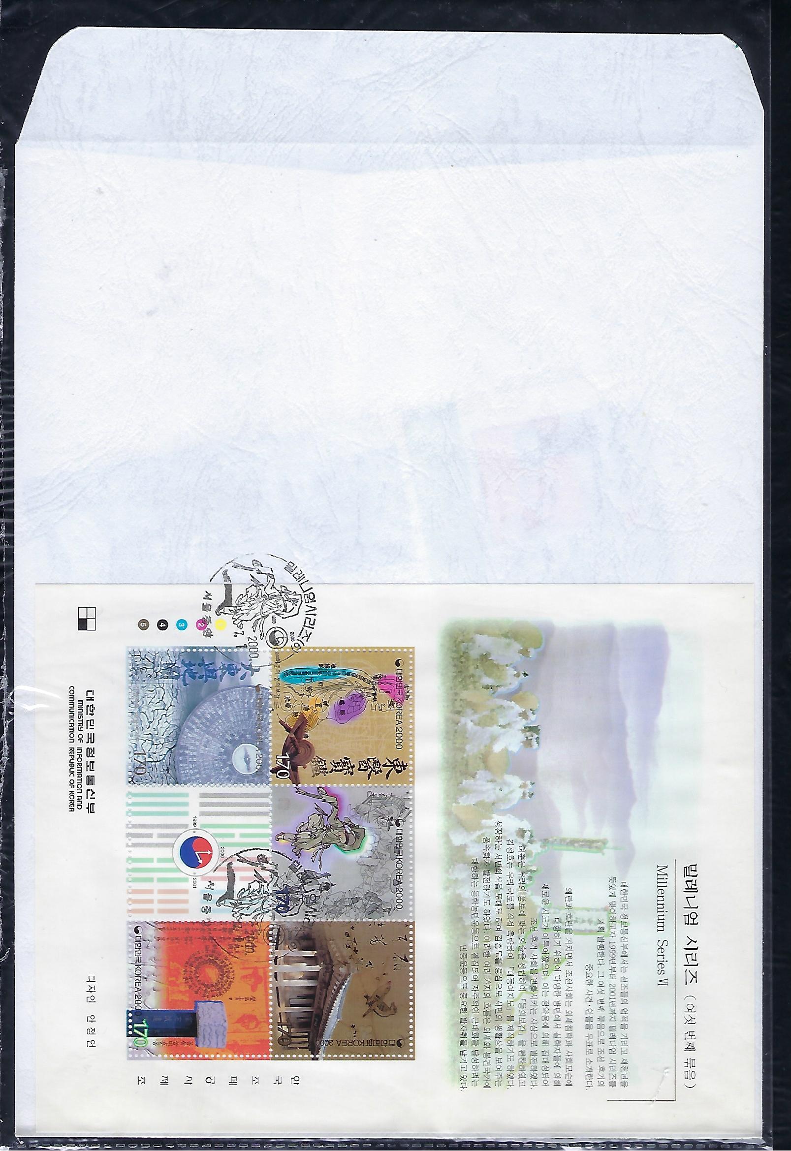 2000년 밀레니엄 시리즈 (제5집) 6완 우표 안내 카드 포함 초일 봉투(FDC) 전지