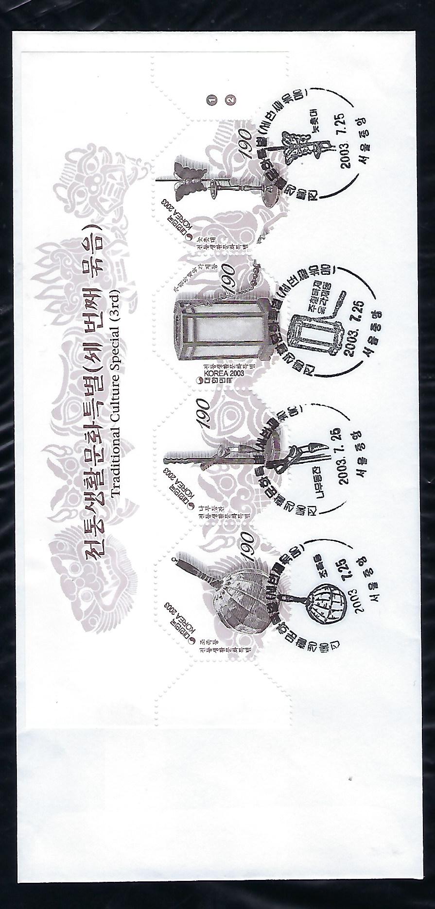 2003년 전통 생활문화 세번째 묶음 우표 4연쇄 초일 봉투(FDC)
