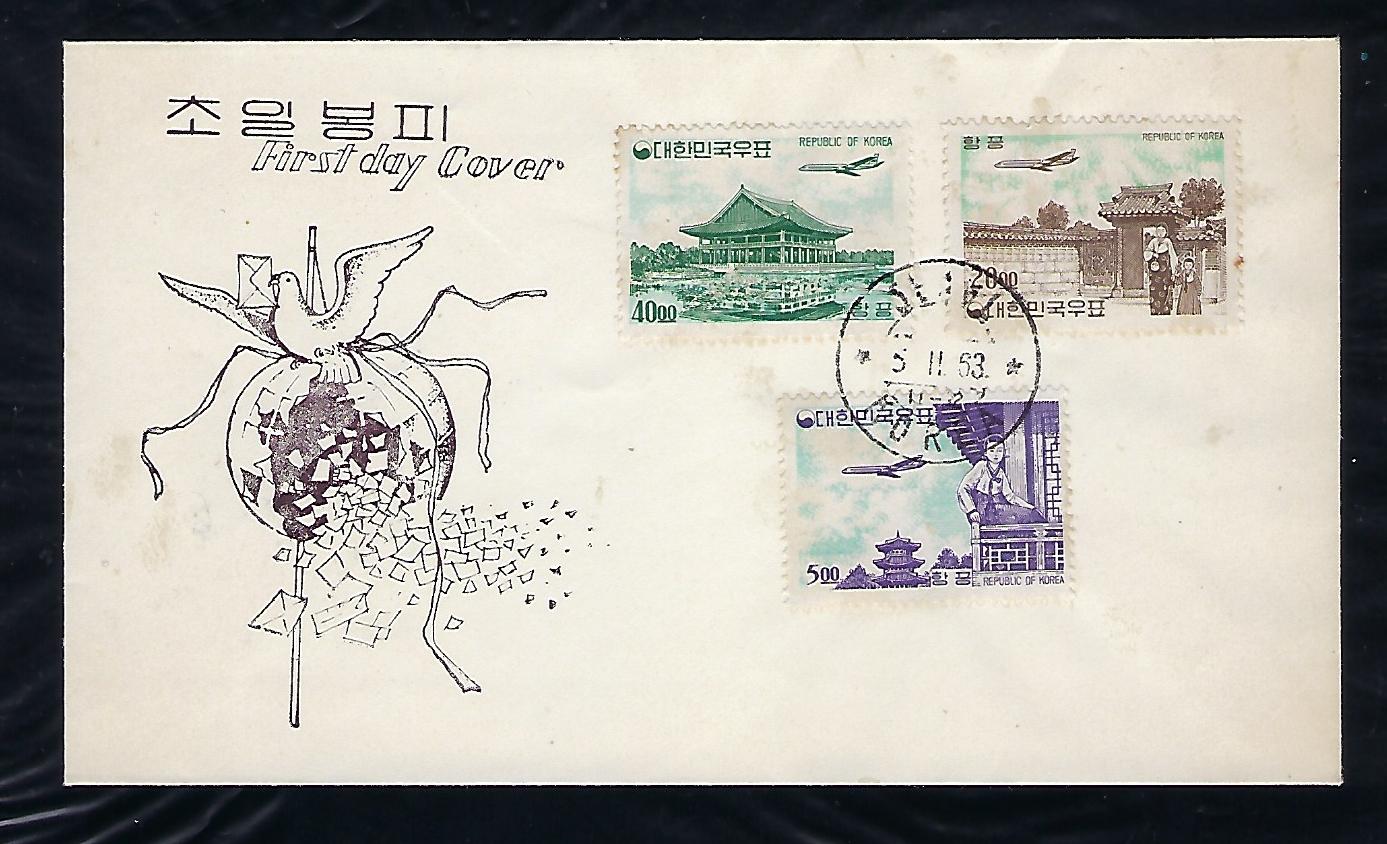 40환 마패 봉함엽서에 100환 장구와 북 우표첨부 속달 엽서 실체