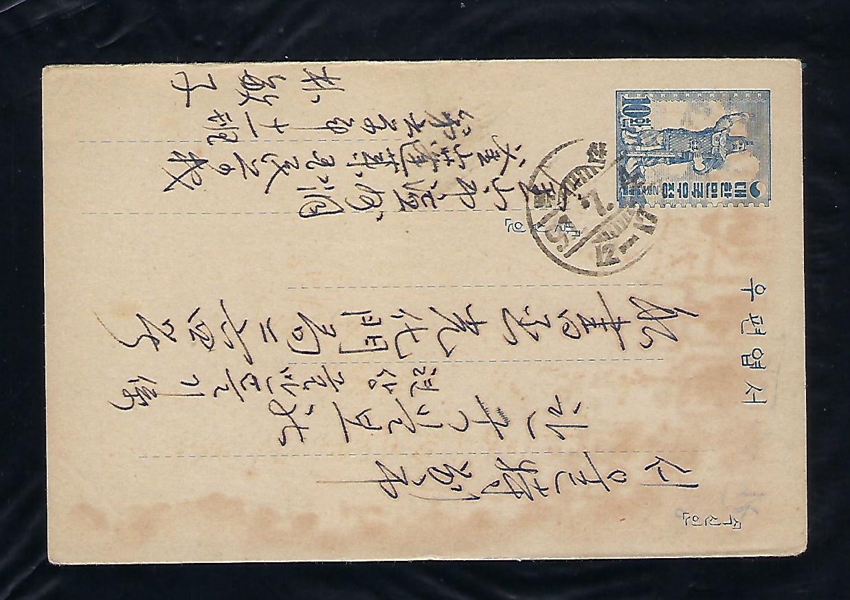 10환 우표 가첩 마패 엽서에 5환 거북비 우표첨부 엽서 실체