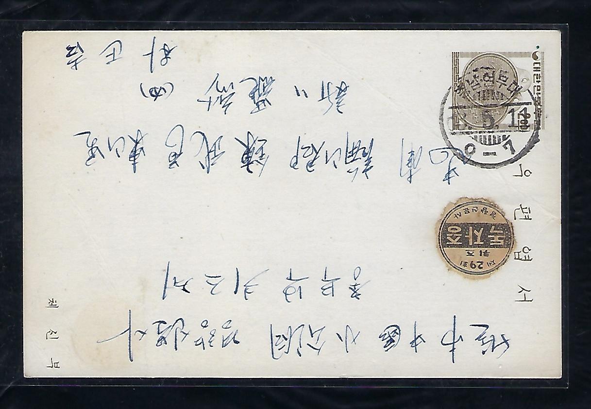 5환 을지문덕 엽서에 이승만 대통령 80회탄신 초일 소인