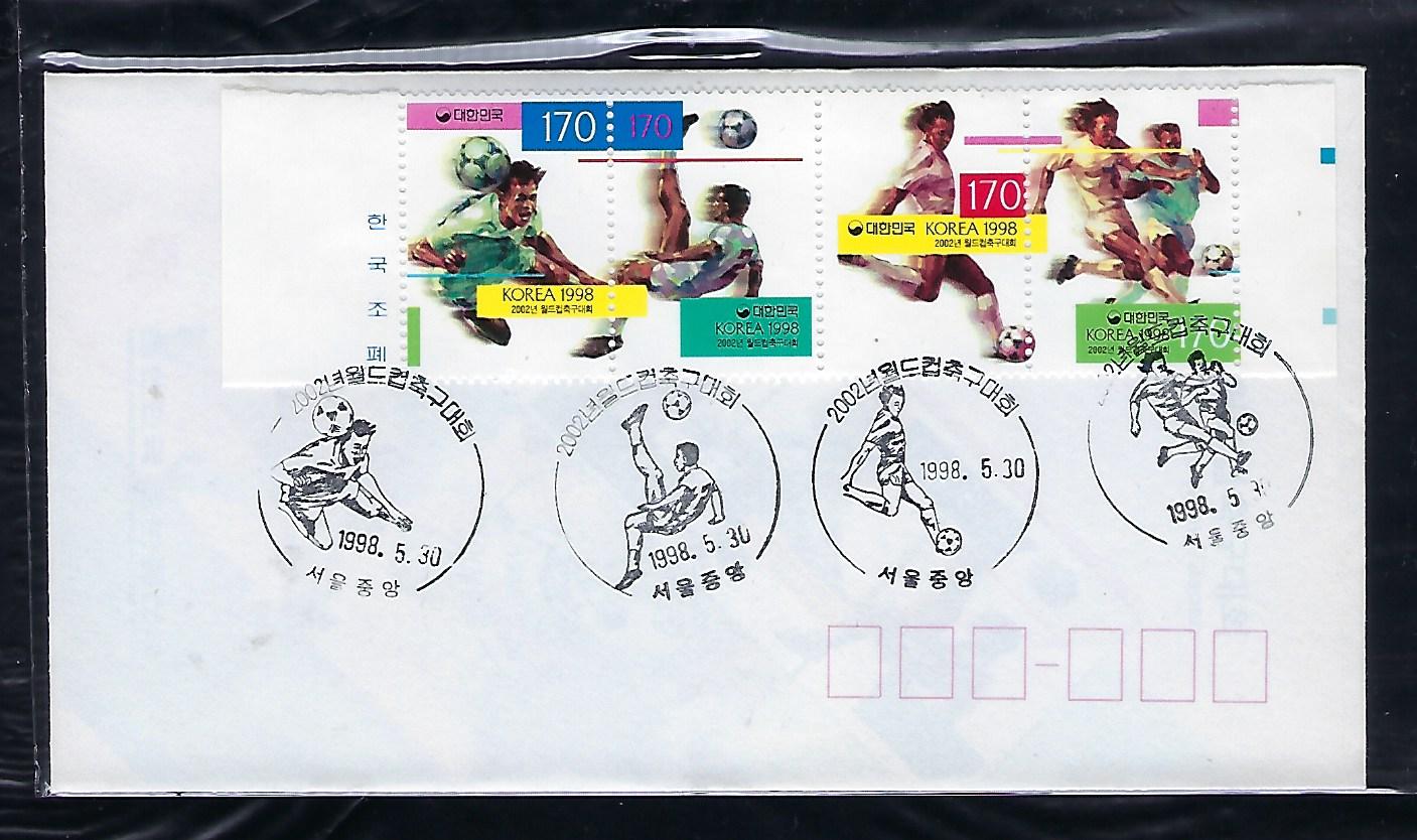 1998년 2002년 월드컵 축구대회 4종연쇄 우표 안내 카드 포함 초일 봉투(FDC)