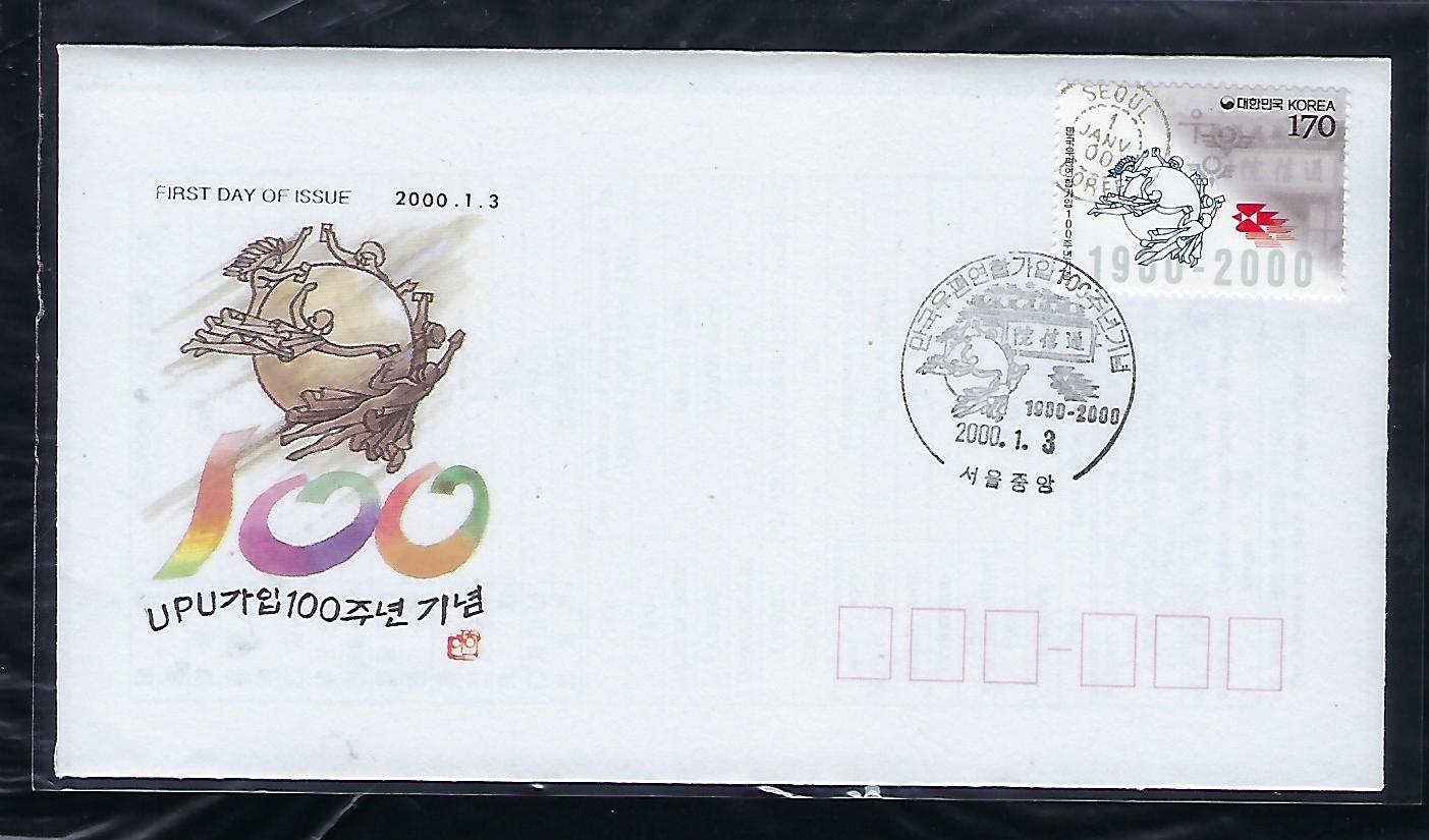 2000년 UPU 가입 100주년 우표 안내 카드 포함 초일 봉투(FDC)