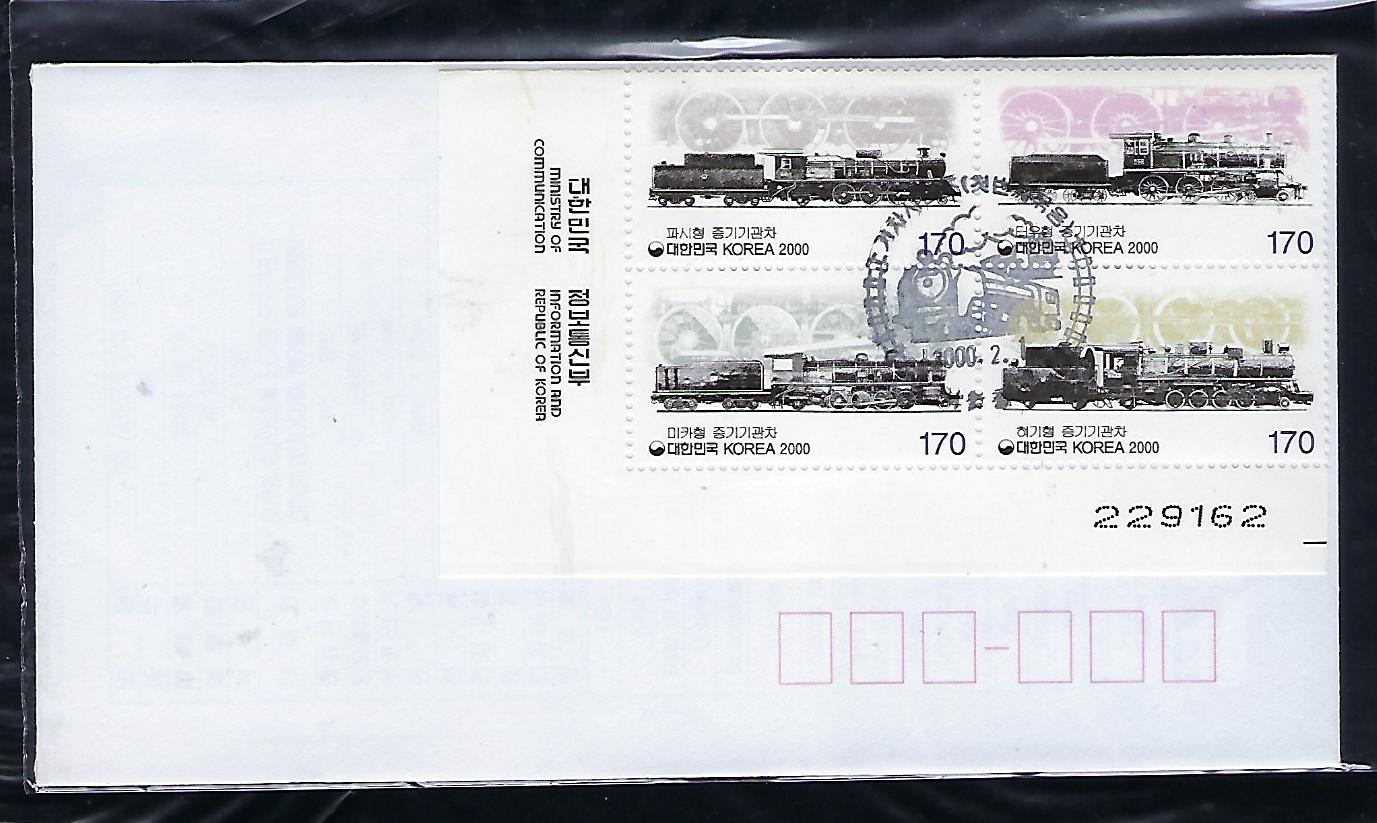 2000년 기차 시리즈 (제1집) 4완 우표 안내 카드 포함 초일 봉투(FDC)