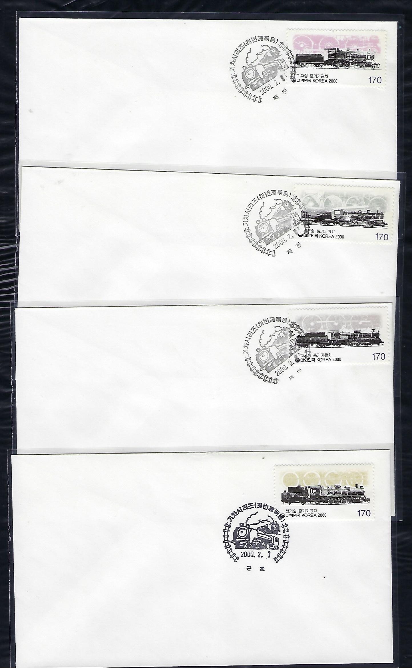 2000년 기차 시리즈 (제1집) 우표 초일 봉투(FDC) 4완