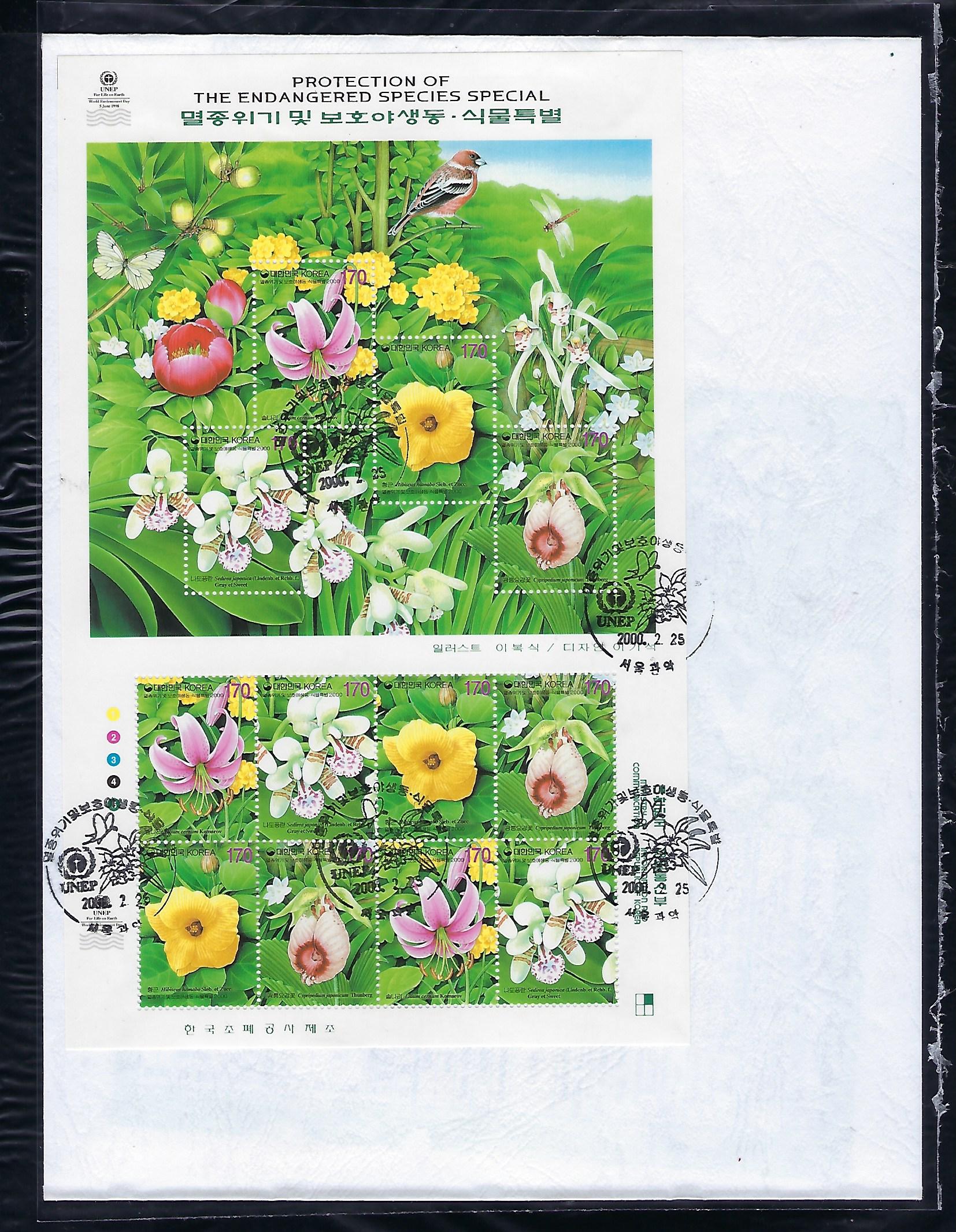 2000년 멸종위기 및 보호 야생 동-식물 우표 초일 봉투(FDC) 4완
