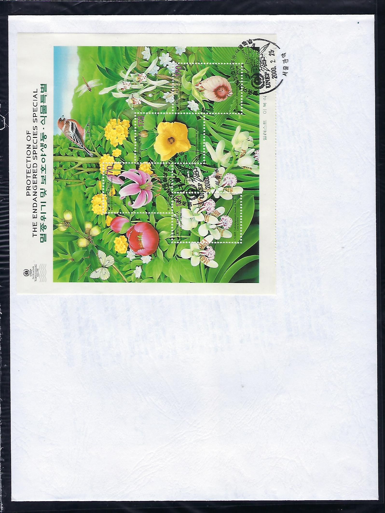 2000년 멸종위기 및 보호 야생 동-식물 반 전지 우표 안내 카드 포함 초일 봉투(FDC)